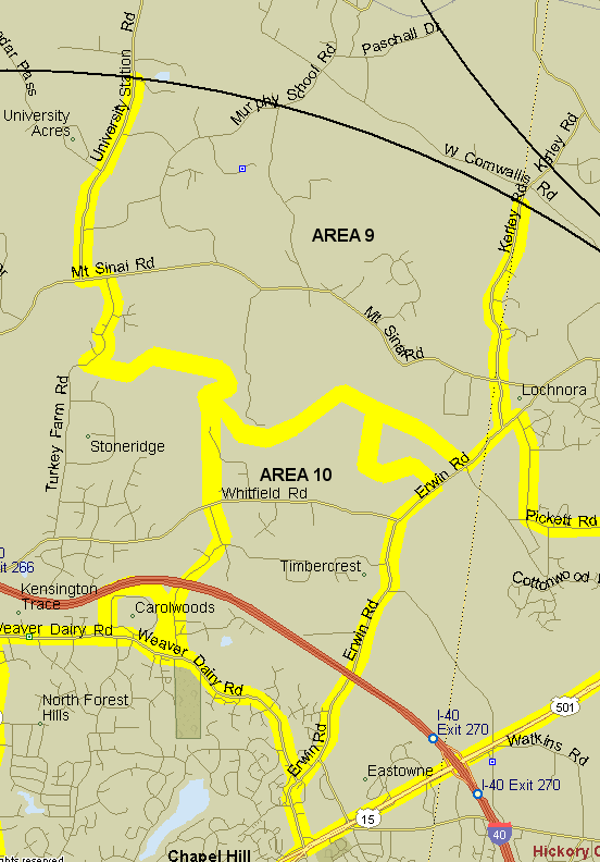 Chapel Hill Bird Count Circle — areas 9 and 10